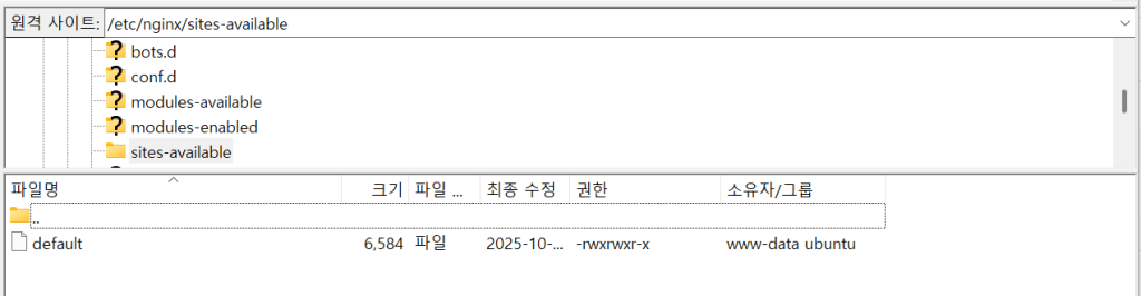 nginx의 설정 파일을 다운로드 하기 위해서는 SSH 클라이언트를 통해서 수정을 하는 방법과 파일 서비스를 통해서 직접 설정 파일을 다운 받아 수정하는 방법이 있습니다. SSH 클라이언트 이용시 텍스트 편집이 편하지는 않아서 저는 직접 파일을 다운받아 수정하는 방법을 선택하였습니다.